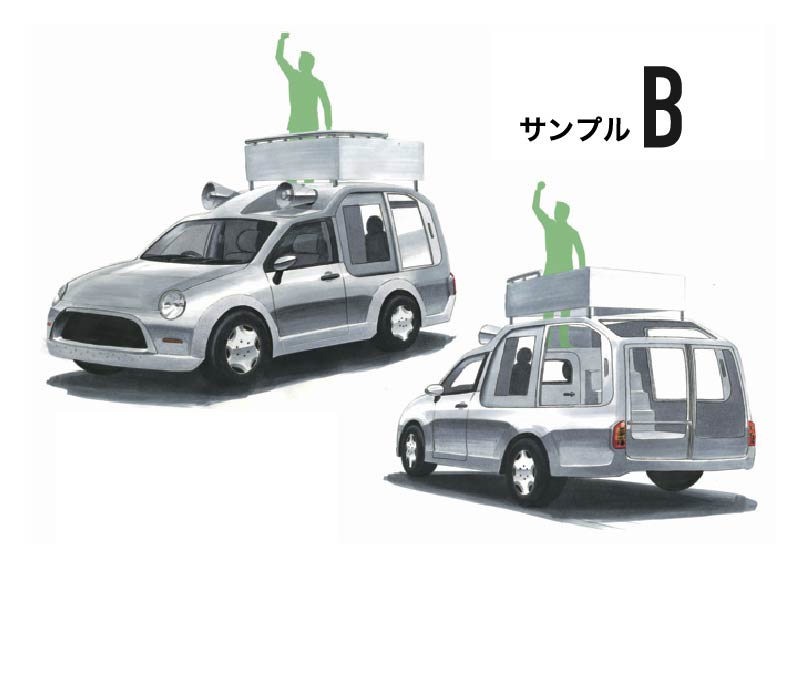 国政選挙や地方選挙などの選挙活動において、選挙カーは活動の為の重要なツールである。しかし従来の選挙カーは、機能的に候補者のニーズを十分に満たしているとは考えにくい。また、一般市民にとって好ましい、魅力的な印象を持つ事も重要である。そこで、インタビューなどの調査に基づき、候補者の政策等を効果的に伝達できる選挙カーの開発を行った。現状の選挙カーの調査や、議員など利用者のインタビュー調査をもとに新たな選挙カーのニーズを分析し、デザイン案を制作した。